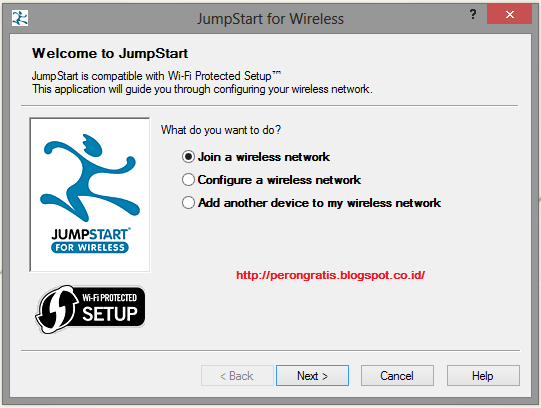 5. Selanjutnya buka software JumpStart for Wireless dan klik tombol Join a wireless network. Klik Next.